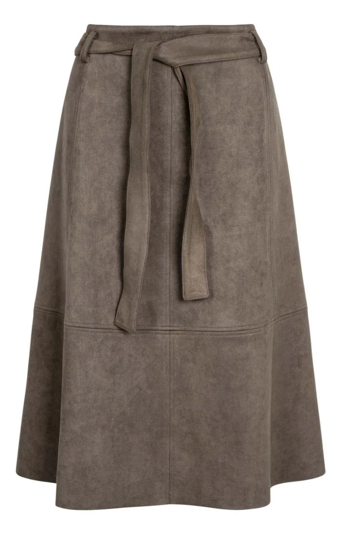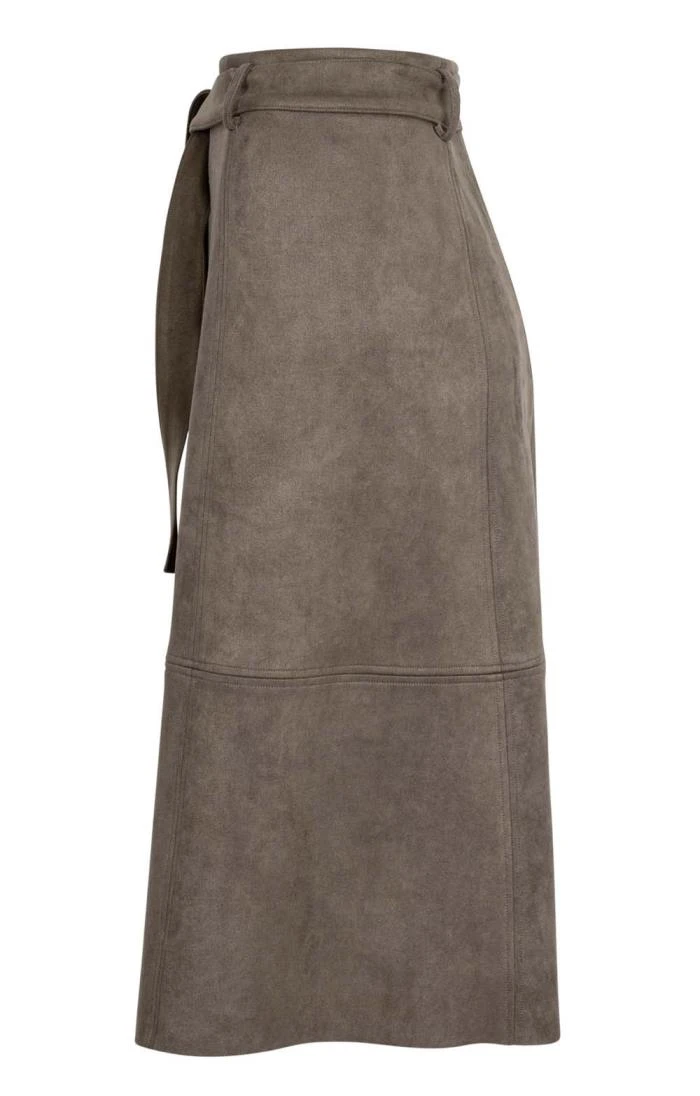 Beautifully supple with the sheen of real quality, this faux suede skirt brings you the distinctive texture of premium goat suede at a pocket-friendly price. Constructed in a pretty panelled design and finished with a self-coloured tie waistband.