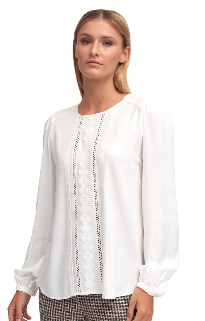 This fun and easy to wear ladies Asutria embroidered blouse showcases a chic collarless silhouette and delicate pointelle detailing to the front. Crafted from premium fabric which is luxuriously soft and supple, the beautifully draped sleeves are gathered at the narrow buttoned cuffs which feature similar embellishment.