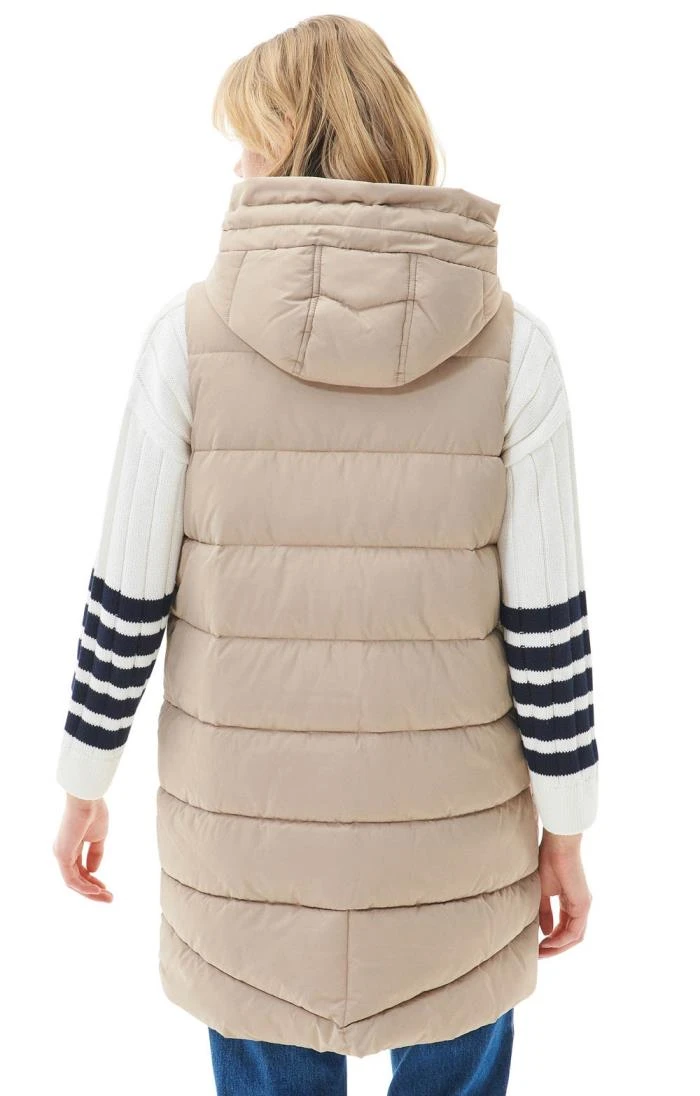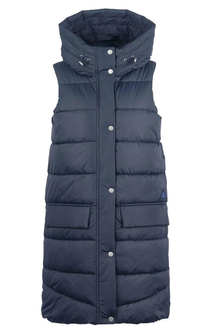 Perfect for country walks and outdoor activities whatever the weather, this superb ladies Barbour Bracken gilet is both practical and stylish. Crafted from premium recycled materials, this contemporary choice features an outsized snorkel hood with adjustable cord, wide baffle quilted design and angled stitching to add interest to the design.