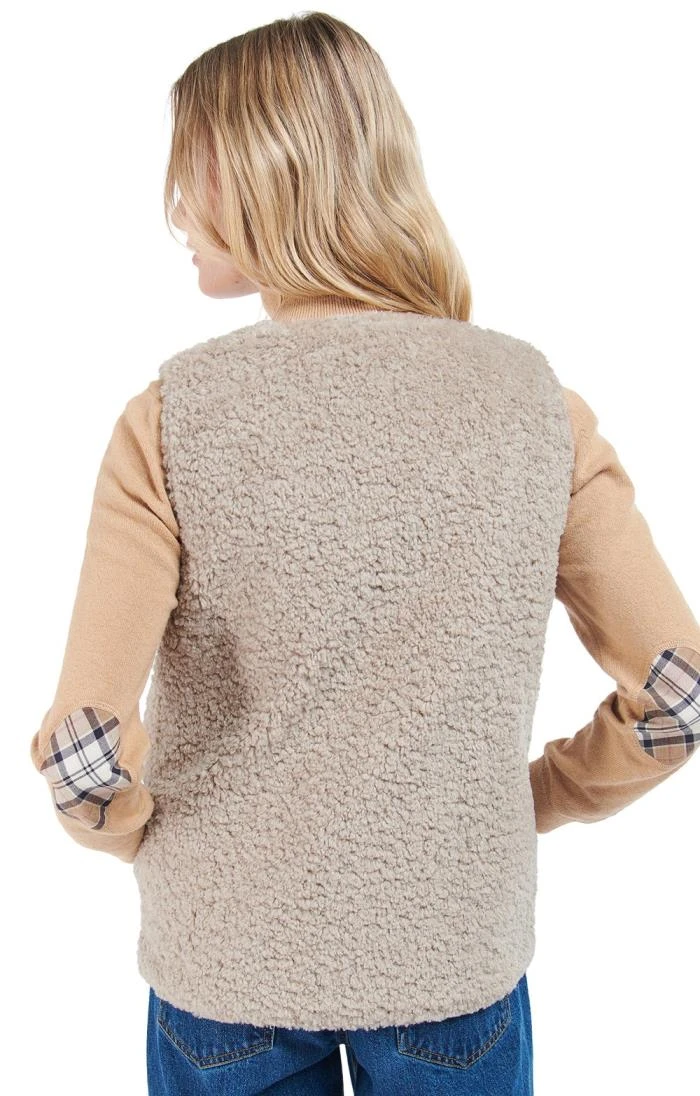 This ladies Barbour Kintra liner boasts a teddy fleece finish with buttoned front fastening. A lightweight and sleeveless design that works as an extra layer, this beautifully crafted gilet boasts two large lower patch pockets for hands and hankies and a sleek, collarless finish.