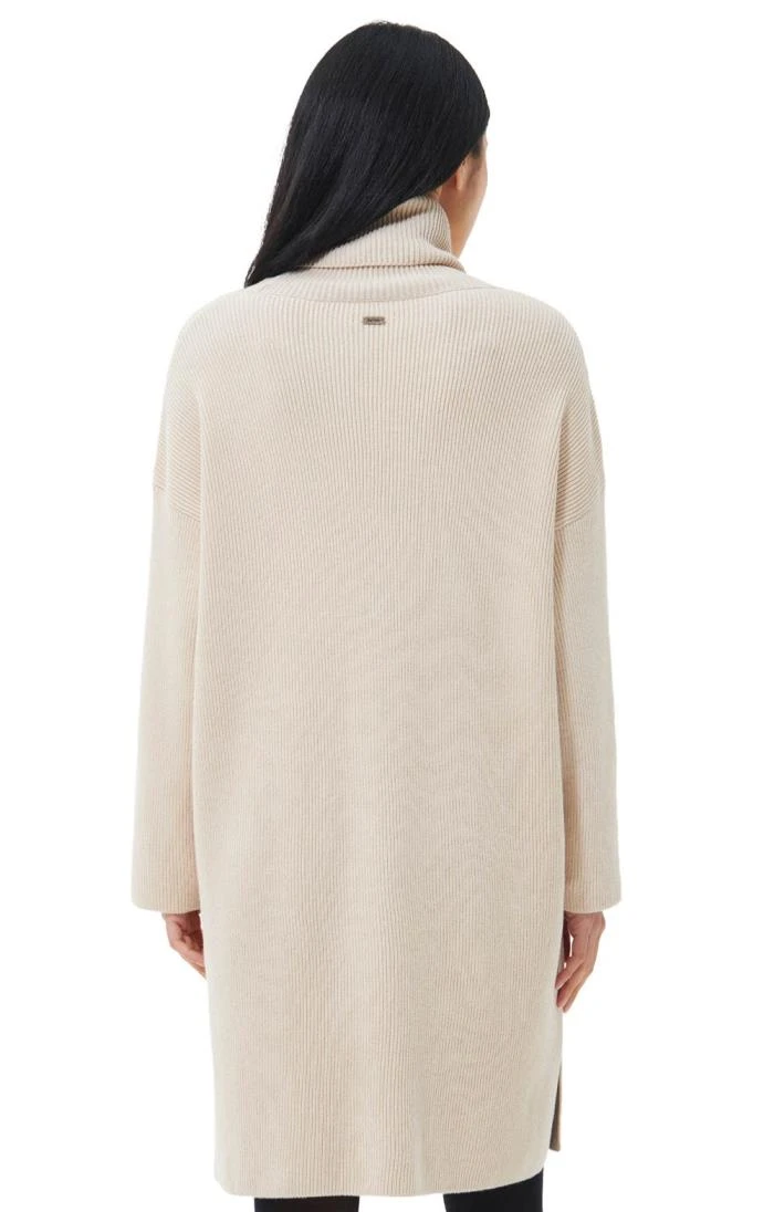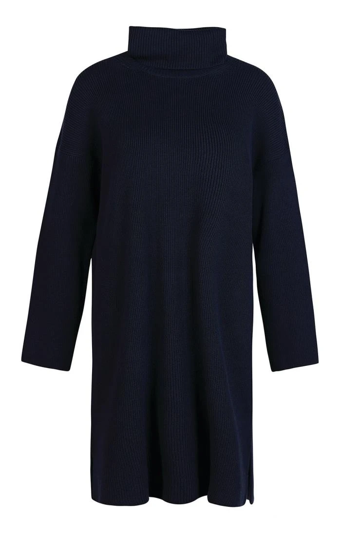 The perfect choice for smart casual style, this ladies Barbour Stitch Knit dress features a chunky ribbed look with an oversized silhouette. Dropped shoulders and a wide stand-up collar take its relaxed look one step further, while the open seams at the side give it lots of room to move. Pair with high knee length boots and tights and accessorise with a sparkly belt to effortlessly convert this casual daytime look to evening elegance and glamour.