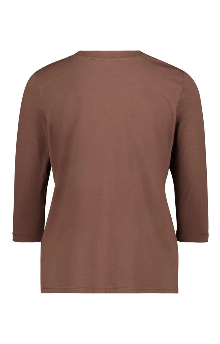 The soft cotton jersey three-quarter sleeve print T-shirt by Betty Barclay captures the imagination with its striking florals, dazzling sequins and foiled graphics. Styled in a semi-fitted shape with fashionable fold-back three-quarter length sleeves, spark joy and individuality into your new season selection in this virtuosic version of a wardrobe essential.
