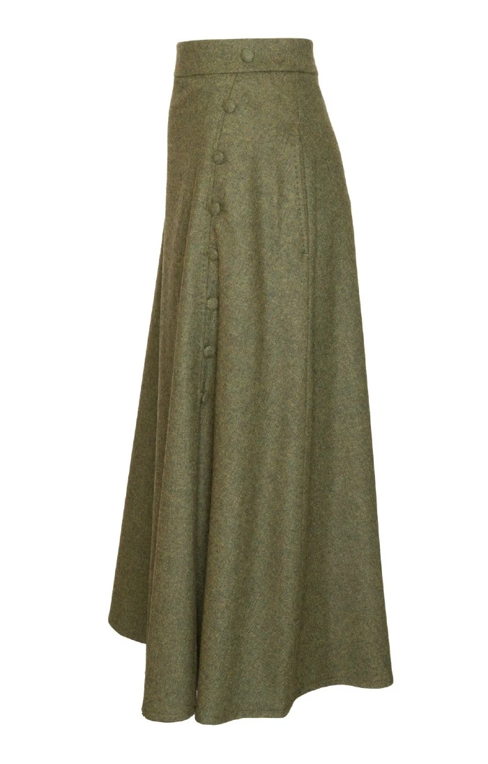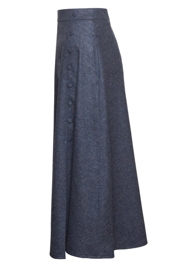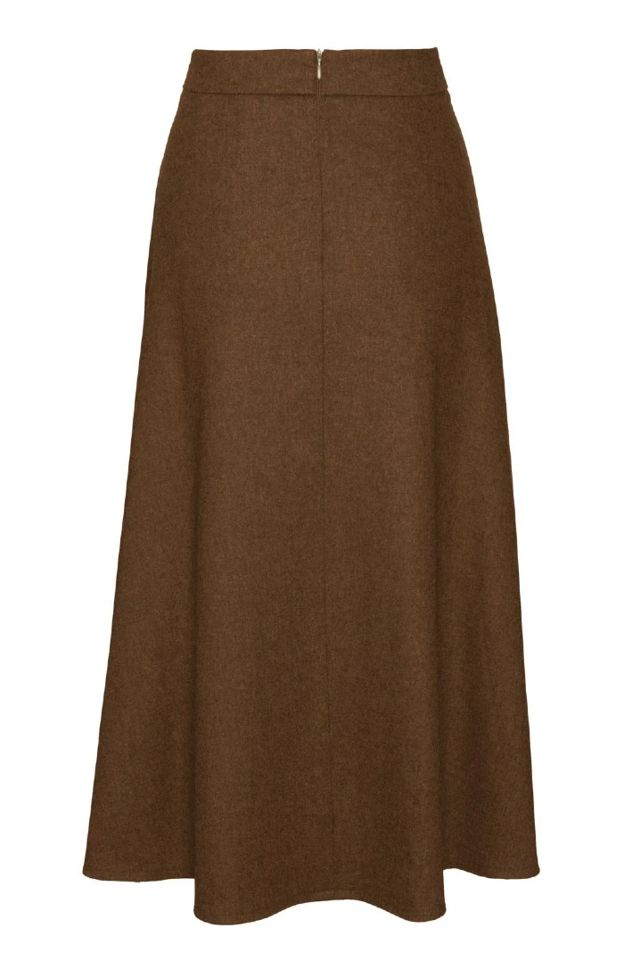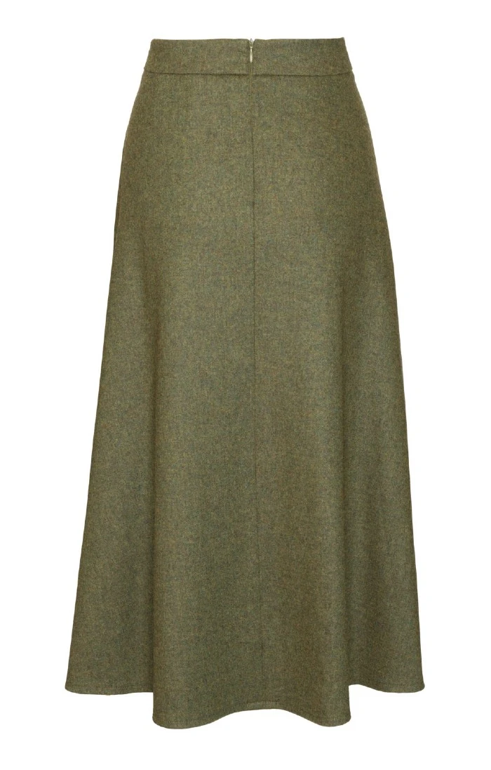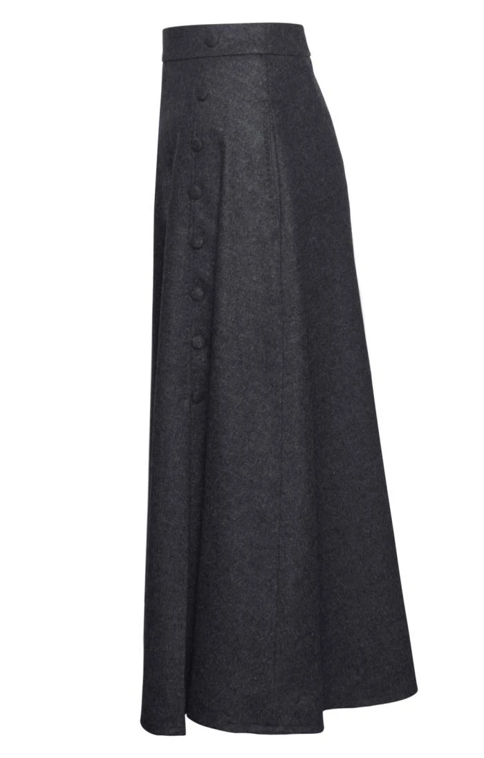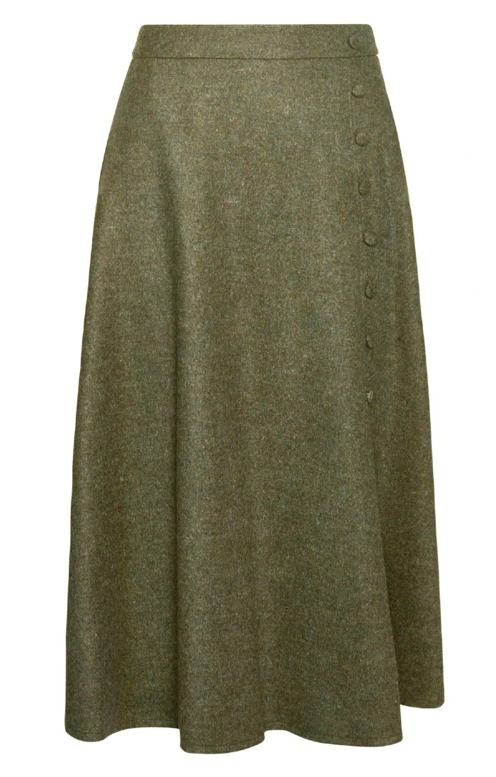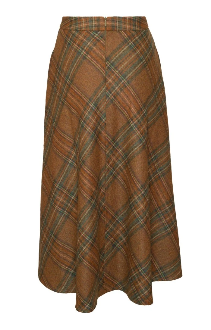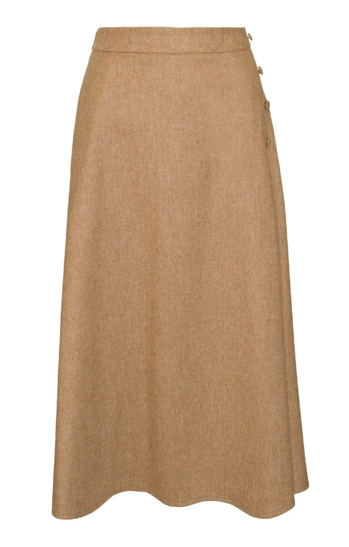A series of covered buttons runs down one side of this distinctive flannel skirt, giving it a relaxed and unassuming air that’s perfect for casual get-togethers. With side seam pockets, a centre back zip and AMF stitching.