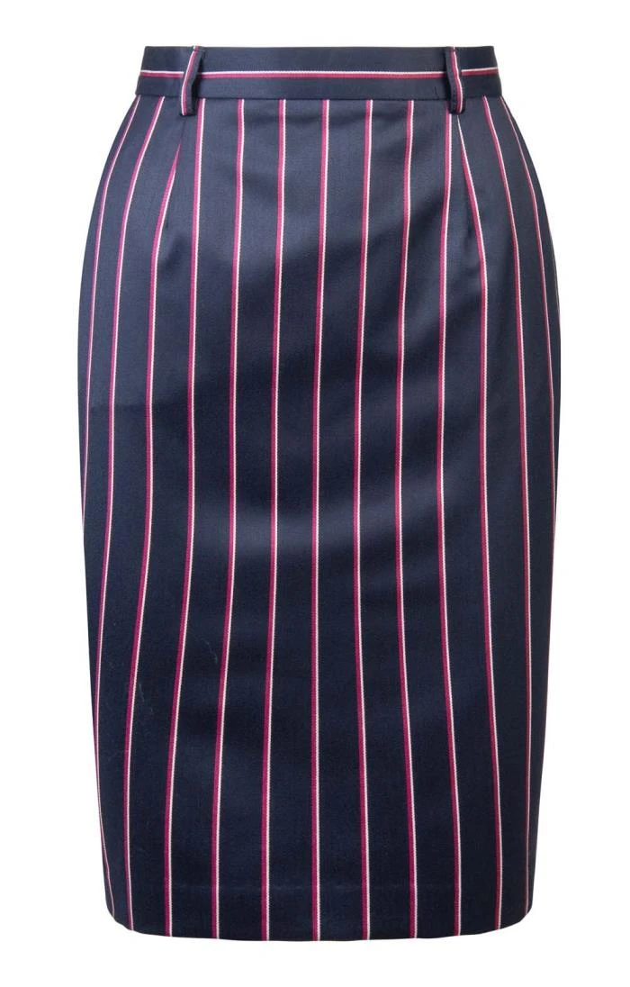 Always in style, this ladies classic skirt features a traditional pencil cut crafted from the finest quality wool. A long term wardrobe staple, the skirt has a rear zip and button closure and a discreet hem slit. It is slightly gathered at the waist for a figure-hugging silhouette and comfortable lining.