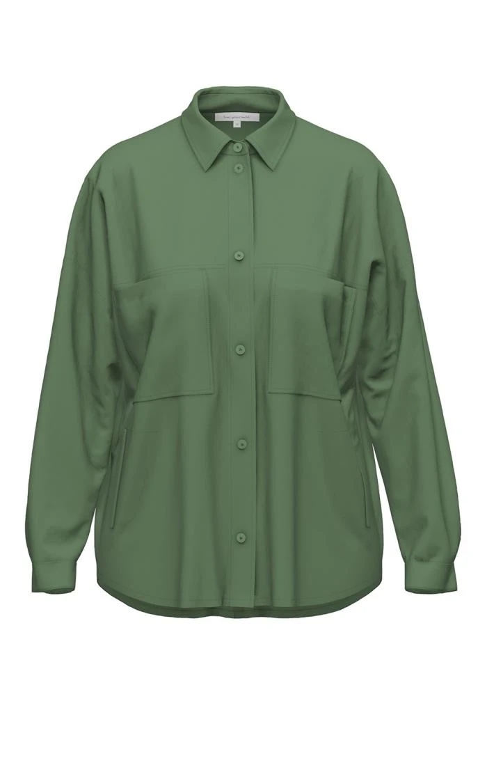 The long sleeved overshirt by Erfo puts a feminine spin on a workwear inspired favourite with its draping viscose fabric, curved hemline and oversized patch pockets to the chest. Cut in a casual fit with dropped shoulders, cuffed sleeves and lower pockets, this expressive off-duty essential for all ages radiates with relaxation and comfort.