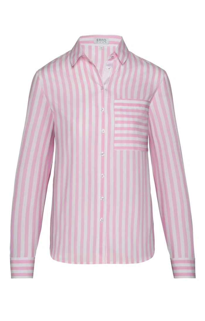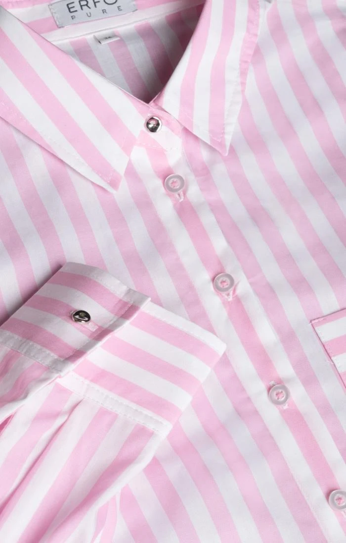 Enduring, adaptable and accommodating, there is a space in every woman’s wardrobe for this 100% cotton long sleeved stripe shirt by Erfo. Tuck into tailored skirts and slacks for sharply styled semi-formal dressing, or leave open over a crisp white T-shirt and comfy jeans for easygoing everyday wear that retains an edge of elegance and eminence.
