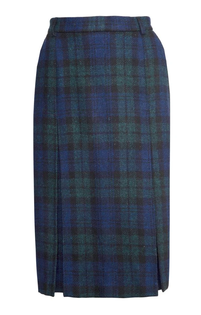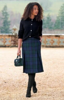 Two inverted front pleats give this Harris Tweed tweed skirt its distinctive shape and movement, with side pockets and a concealed button and zip rear closure maintaining its elegant lines. Hand woven Harris Tweed gives it a wonderful depth of colour and a quality of craftsmanship that’s unsurpassed.
