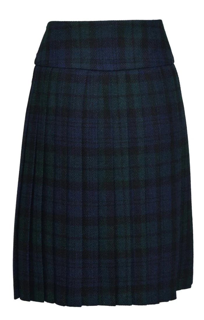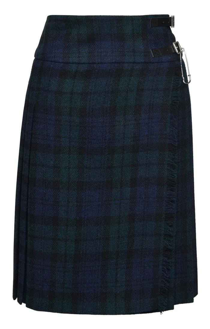 A new look in Blackwatch and a new look for Harris Tweed, this handwoven kilt blends traditional craftsmanship with a sharply modern design. With a delightful swinging movement and an enchanting Blackwatch plaid, this skirt takes both formal and casual occasions in its stride.