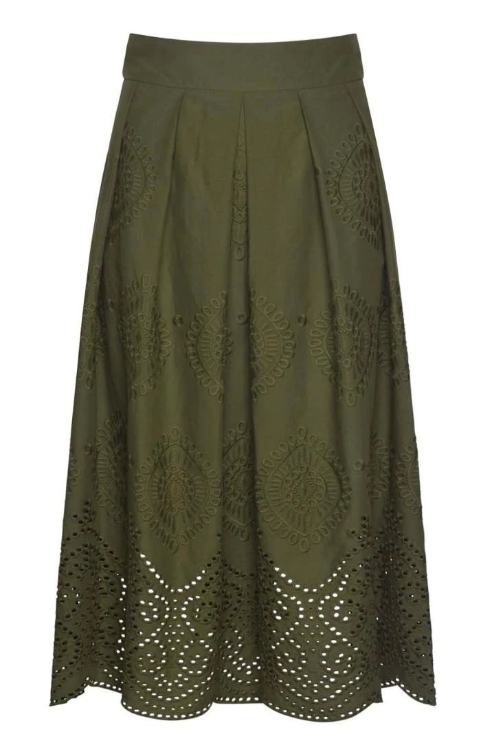 Made in 100% pure cotton, the Jodie embroidered skirt matches intricate embroidery with a shimmer of sequins at the hem for a strikingly sophisticated look. With its elegant drape and pleated construction, this is a real statement piece that you will enjoy for many seasons to come.