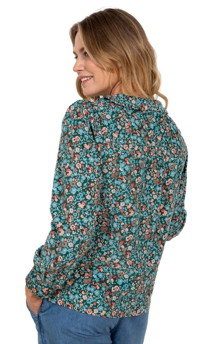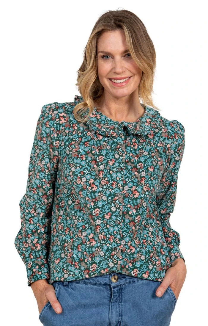 Boasting a vintage squared silhouette with a feminine Peter Pan shaped collar, this ladies Lily & Me Lottie top showcases bold prints and classic charm. The straight cut body is emphasised by the oversized sleeves and voluminous shoulders, both of which are offset by the unique angled hemline. Ideal for a fun weekend outfit, it pairs well with jeans, country boots and a smart blazer for a chic and eye-catching style.