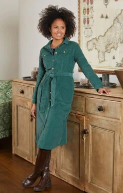 Displaying a distinctly retro vibe, the midi shirt dress by Lily & Me will swing you back to the seventies with its muted cotton corduroy fabric and slightly flared skirts. An enduring classic for a reason, its button-through front, fabric tie belt, flapped chest pockets and casual hand pockets are a study in informal dressing with an eye for eternal relevance. Embrace the look over a finely knitted roll neck and knee-high boots.