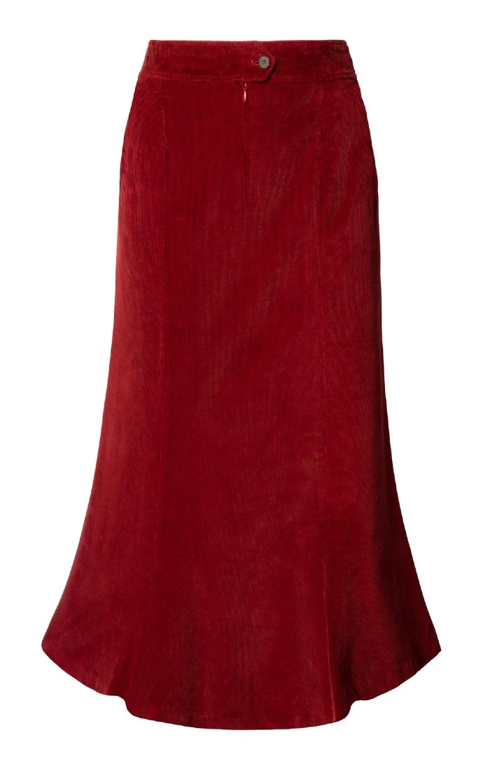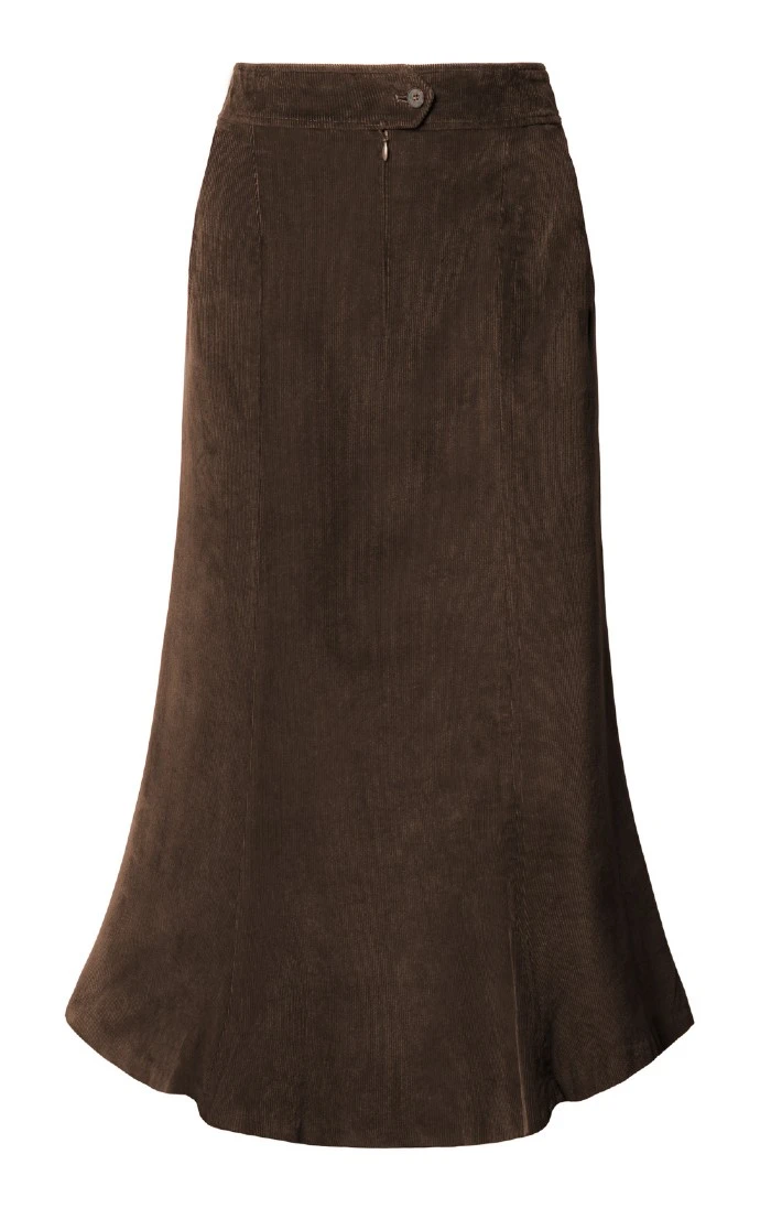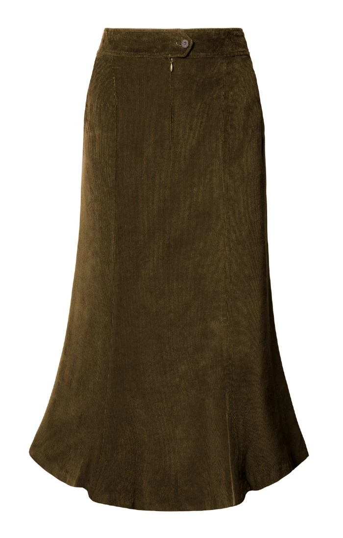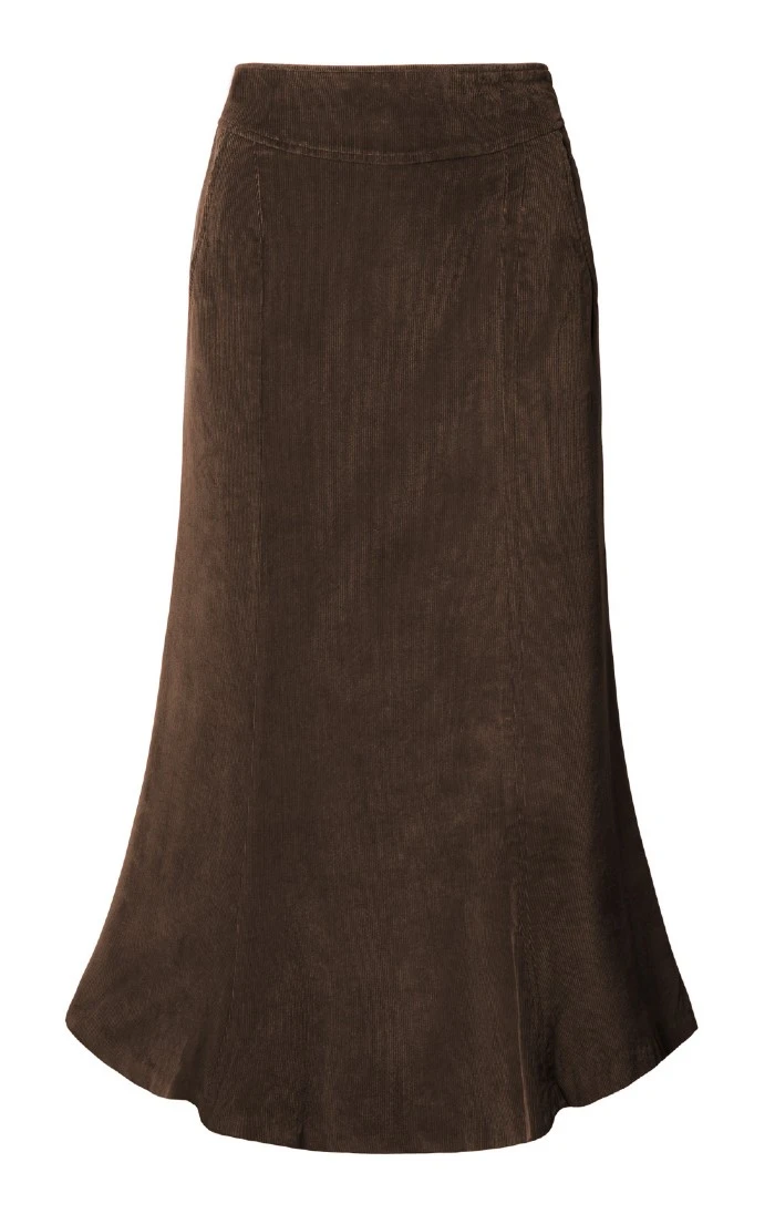 Gently flared for an unmistakably feminine silhouette, our stretch long cord skirt is fully lined with a concealed centre back zip.