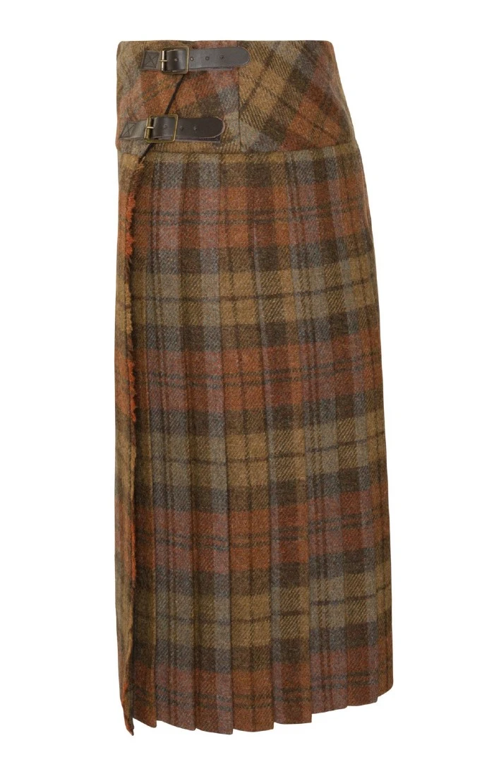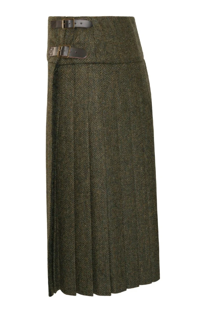 Inspired by age-old heritage designs, this strikingly modern long tweed kilt has a wonderfully flattering fit and gracefully fluid movement that can t help but attract admiring glances. Features authentic leather buckle straps. Made in Scotland.