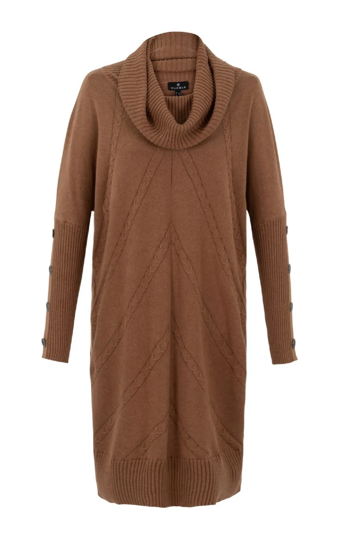 Ideal for cosy winter days by a crackling fire or snuggling on the sofa, this 100% cotton Marble knitted roll neck dress is the perfect balance between comfort and style. Featuring contemporary ribbed details on the arms and trim, it shows off batwing sleeves and a curved silhouette that is designed for relaxation as well as fashion appeal.