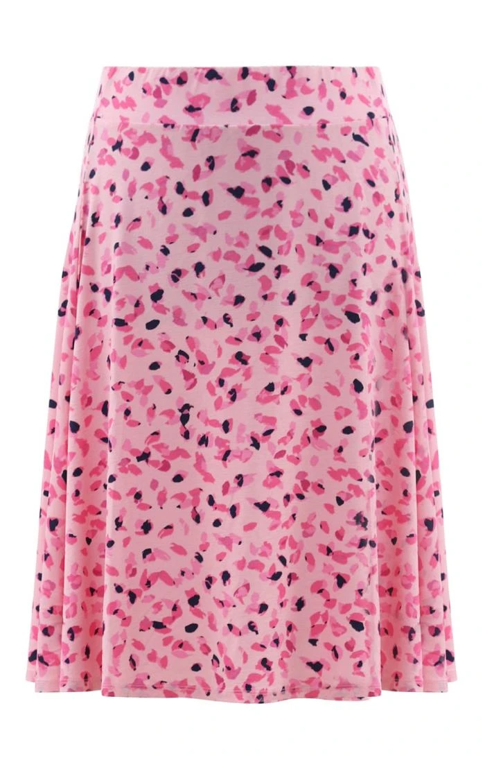 Vibrant and fun, fresh and feminine, this ladies Marble printed skirt is an attractive choice for warm summer days. The wide waistband gives the fabric an attractive outline, and the material hangs beautifully to just above the knee.