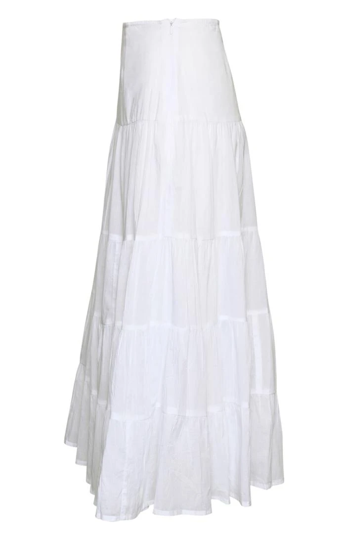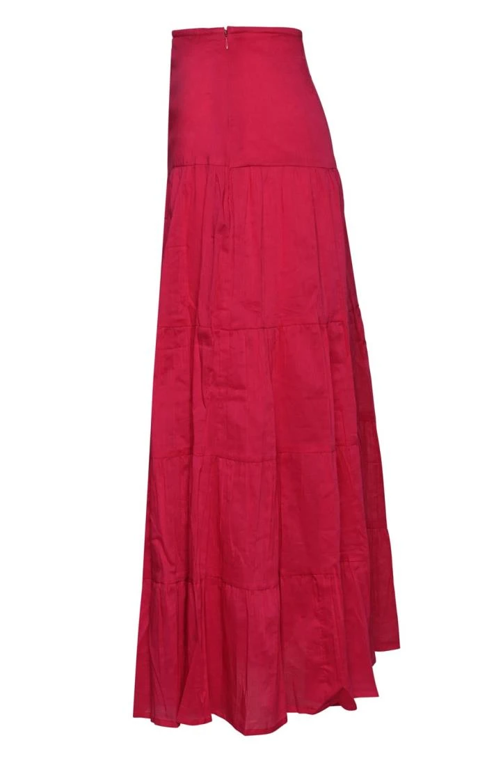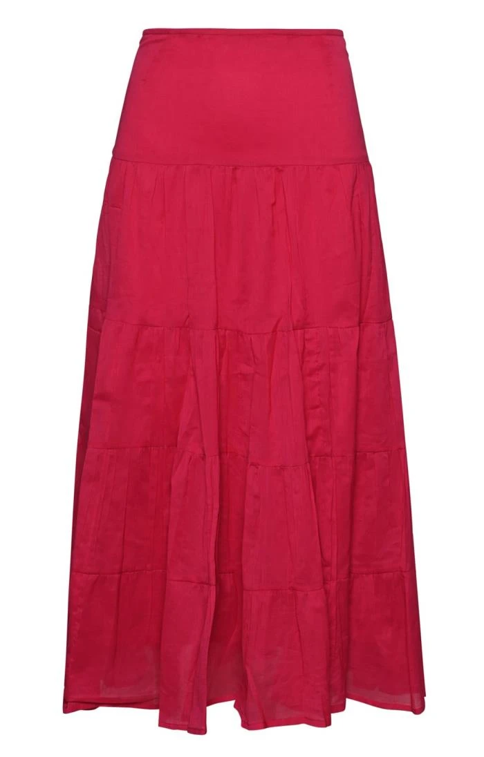 This gorgeous new season tiered skirt from Pomodoro is wonderfully light and airy thanks to its pire cotton construction and sophisticated tiered design. Cut in an A-line shape with shaping darts to front and back, it has a flowing, graceful movement that gives it an extra-special character all of its own.