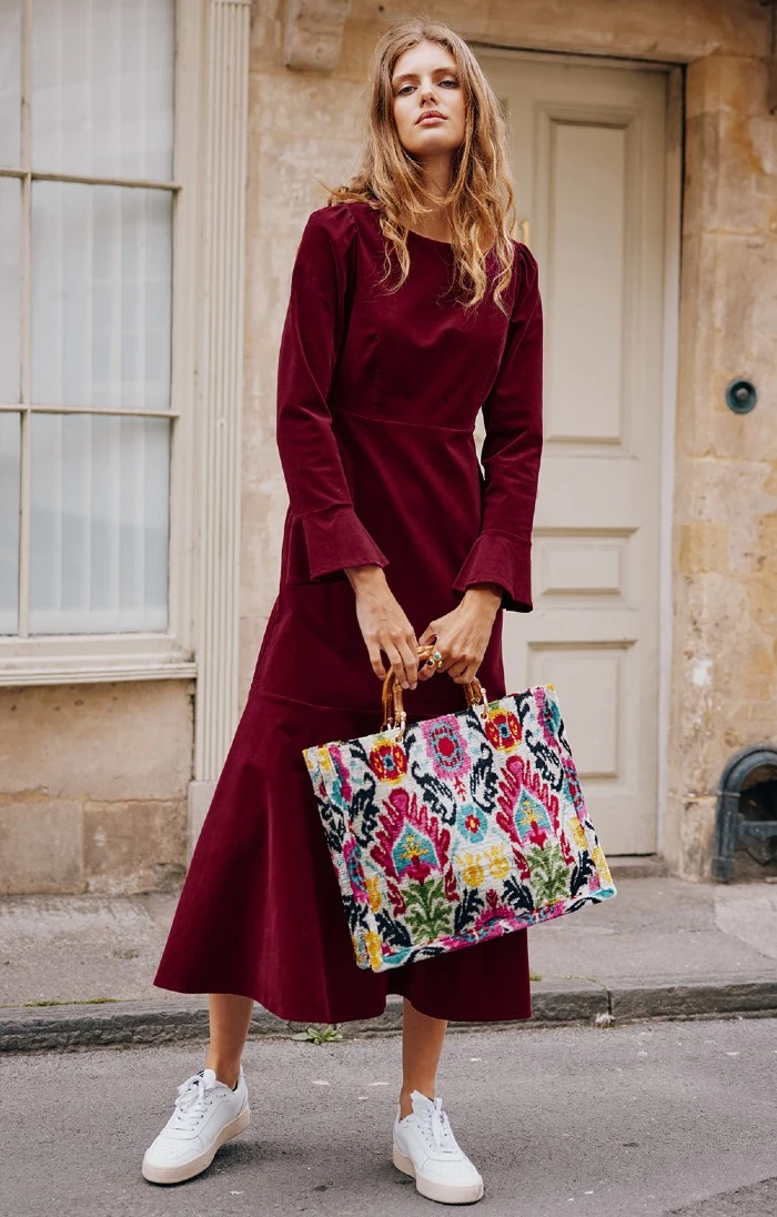 The Rachel dress is a testament to style, sustainability and timeless design. This dress is crafted from responsibly sourced cotton stretch corduroy, ensuring that your fashion choice aligns with your values. The dress showcases a fitted bodice with a soft, flattering fit that gracefully flares into a midi-length skirt. A round neckline and full-length puff sleeves create a classic yet contemporary look and the fluted cuffs add an elegant touch to this versatile piece. The Rachel dress is the embodiment of understated elegance, perfectly suited for a range of occasions.