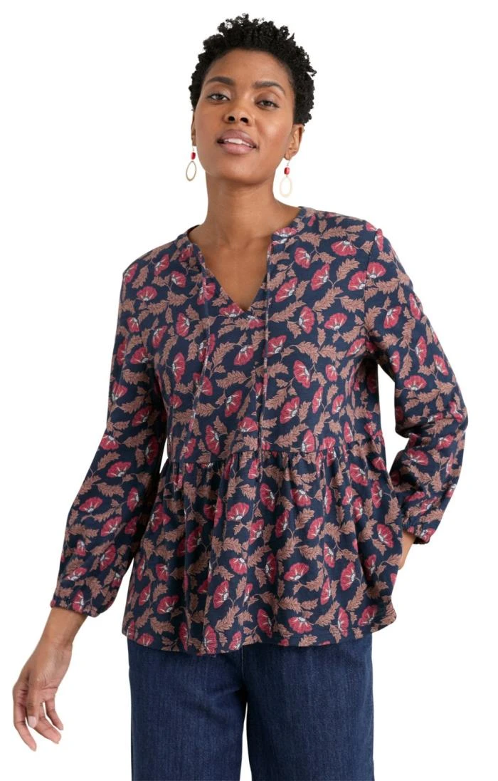 Update your wardrobe with this ladies Seasalt Far Cloud top, crafted from premium organic cotton and printed with a fun and feminine pattern. The notched neckline gives it a flattering shape, and the high, gathered waistline seam gives it a floaty, carefree look that works well for weekend breaks or lunch dates with the girls.