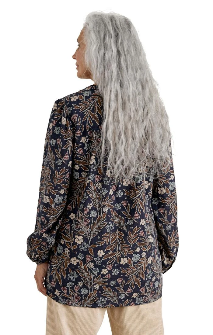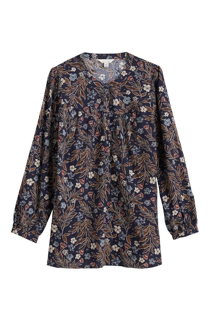 The Seasalt Feildfare tunic is a versatile skimming top that effortlessly combines comfort and style. The button-down front and soft gathers under the front and back yoke create a delicate yet flattering silhouette. Subtle blouson sleeves add a touch of elegance, giving the top a lovely movement and volume, accentuated by the charming ditsy floral prints inspired by Cornish meadows. This easy-fit top is perfect for warm summer days and pairs beautifully with a simple vest and narrow crops, offering a timeless and understated look. With a round neck, buttoned cuffs and a button fastening, it’s an essential addition to your wardrobe for those who appreciate both comfort and classic design.