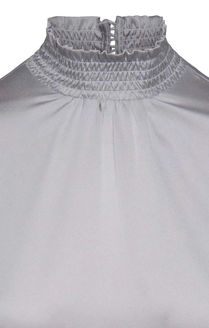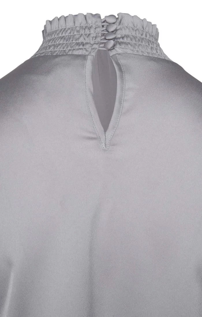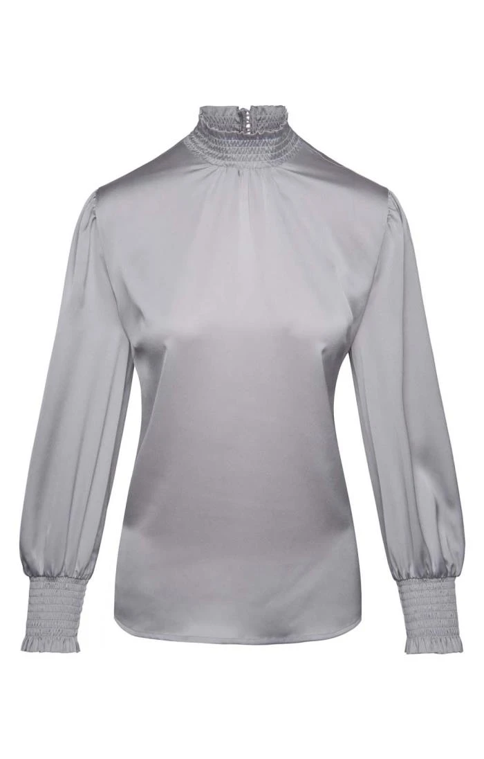A real statement piece, this unique blouse features elaborate shirring at collar and cuffs, with front neck gathers and gathered sleeves giving it its wonderfully distinctive shape and rippling movement.