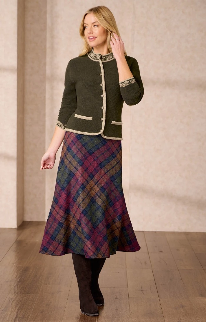 Our premium tweed bias cut skirt is an eye-catching item that draws inspiration from Scotland’s rich history of textile production. With its figure-flattering cut and neatly concealed side zip, it’s always a pleasure to wear, and made in high-quality British tweed for maximum comfort and durability.