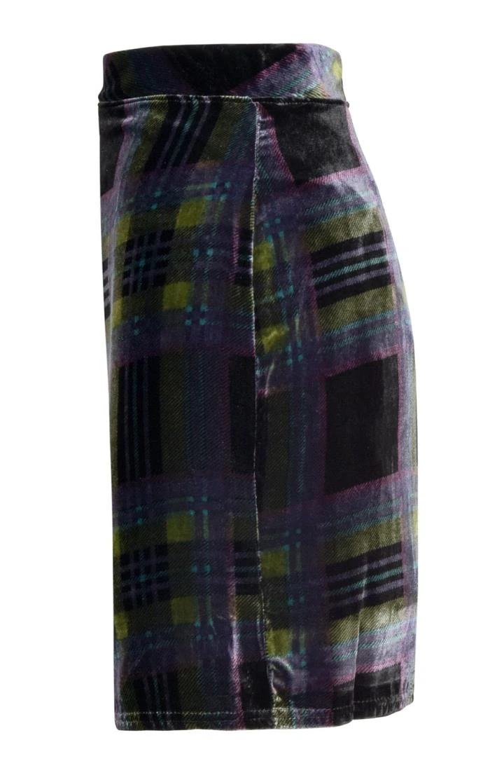 The thrilling interplay of colour and light can t help but attract the eye in our exclusive velvet mini skirt, making it the perfect focal point for any number of evening ensembles. Made in Britain.