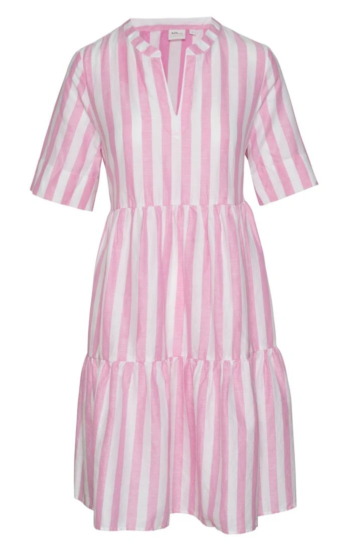 Bring a funky feel to your wardrobe with this summer stripe tier dress. It’s cut in an easy relaxed fit that gently skims the waist, with three-quarter length sleeves and a timeless fit-and-flare skirt. Ticking all the boxes, this chic style boasts a linear look with a stripe print across a flattering silhouette, flaring out at the hem for added movement. Vibrant and versatile with its V neckline, it has an effortlessly elegant design. Join us and celebrate the trend for tiered dresses; style with heeled boots for the office or with strappy heels for dinner and drinks.